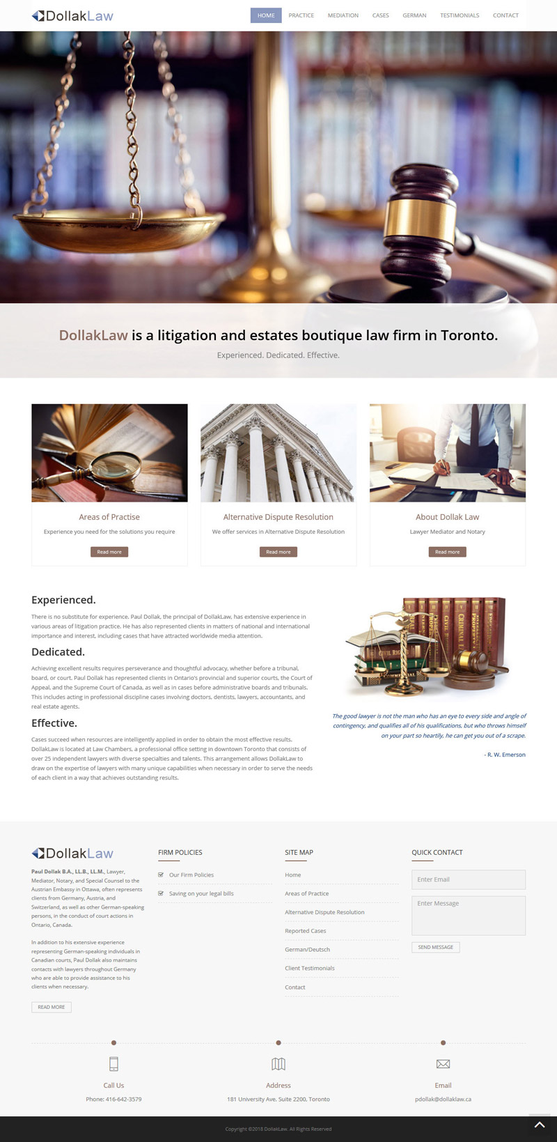 Paul Dollak J.D., LL.M., is a lawyer and also the Special Counsel to the Austrian Embassy in Ottawa and often represents clients from Germany, Austria, and Switzerland, as well as other German-speaking persons, in the conduct of court actions in Ontario, Canada.