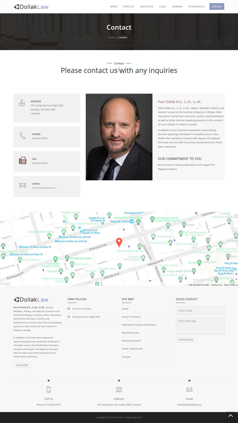 In addition to his extensive experience representing German-speaking individuals in Canadian courts, Paul Dollak also maintains contacts with lawyers throughout Germany who are able to provide assistance to his clients when necessary.